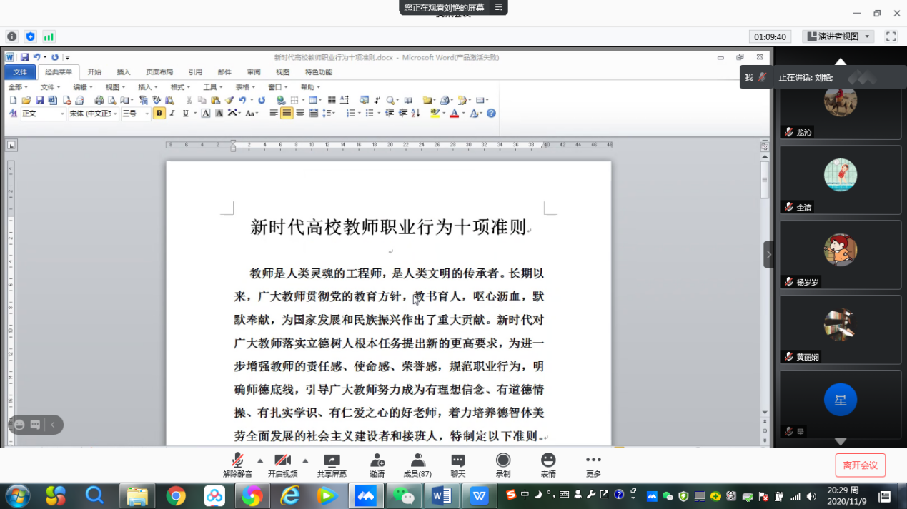 随后,公司党委副书记、正处级辅导员刘艳,组织大家共同学习了《太阳成集团tyc234cc师德师风负面清单及师德师风失范行为处理办法》、《新时代高校教师职业行为十项准则》、《太阳成集团tyc234cc课堂教学管理实施细则》等文件精神,就近期开展的电动车专项整治、员工诚信教育、消防安全检查、防诈骗教育等工作进行了强调部署。