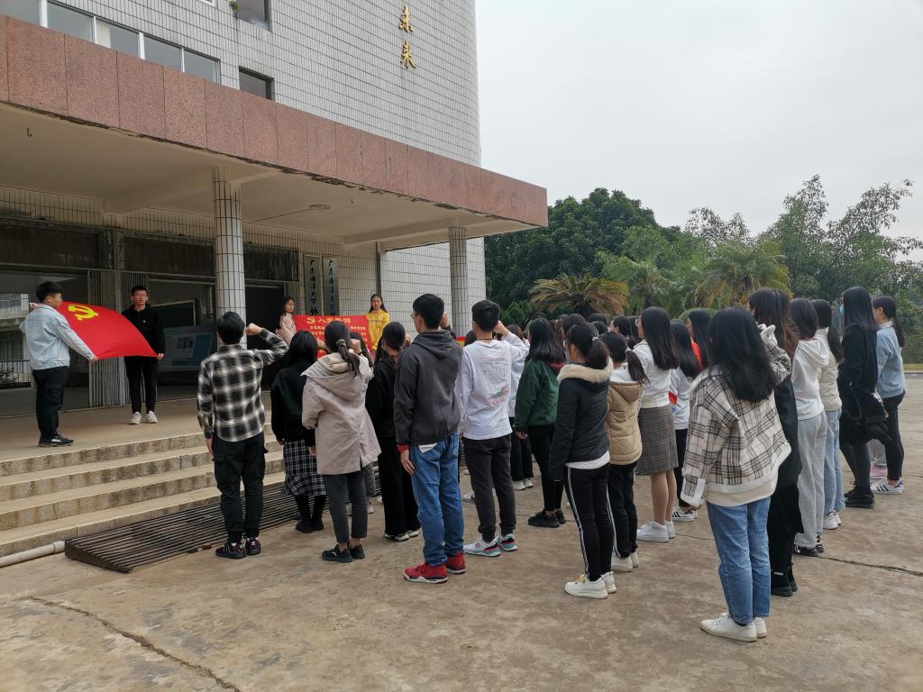 刘艳为预备党员佩戴党徽,并带领全体党员面向党旗,郑重宣誓。最后,刘艳对全体党员提出要求,希望每位党员都能用实际行动去实现在党旗下的誓言,把入党誓词作为自己终身的追求,时刻以党员的标准要求自己,加强理论学习,提高实践能力,争做一名优秀的共产党员党员。