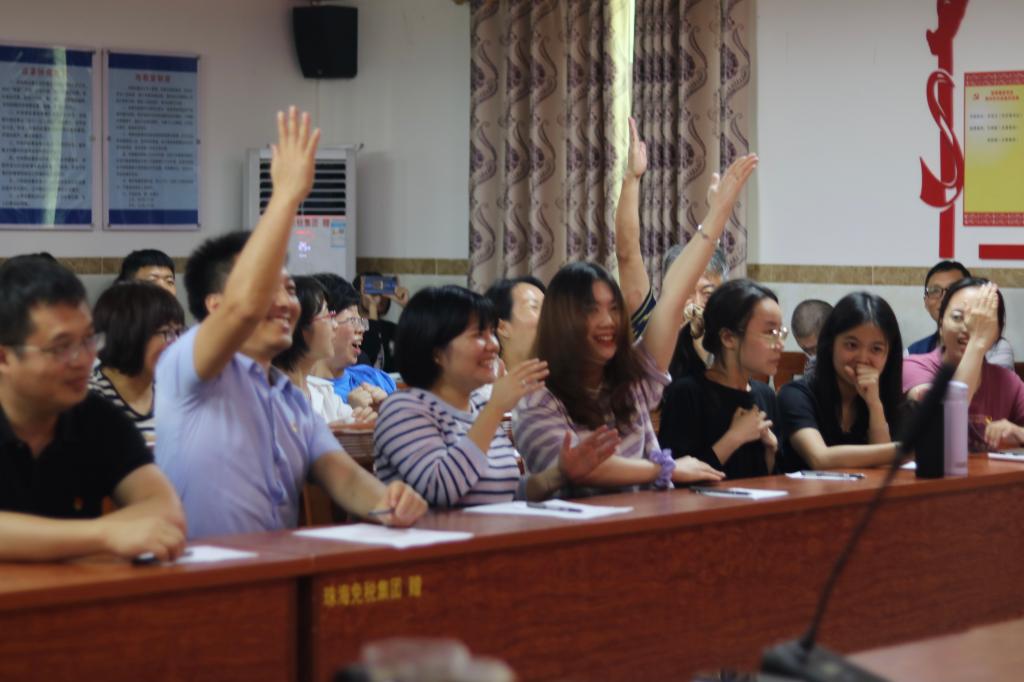 党史知识竞赛活动以党支部为单位,每支队伍由党支部书记带领4名正式党员共5名队员组成。竞赛分为必答和抢答两部分,均为现场作答,旨在考察党员们对党的历史、党的方针政策及党建知识等内容的理解和掌握程度。在比赛时长的限制下,各参赛队员凭借扎实的党史知识基础、认真的复习准备,争先恐后、积极应答。即使在抢答环节,主持人将选择题改为填空题后,难度系数大幅提升,依然也难不倒各参赛队伍,他们团结一心,互不相让,比赛得分追咬紧密,现场气氛紧张刺激。经过一番激烈角逐,最终,员工党支部夺得第一名,日语系教工党支部获得第二名。比赛中,各参赛支部的其他成员变身“智囊团”,积极为各自支部队员出谋划策,参与答题互动,现场气氛高涨。除了代表队成员外,其它党员和入党积极分子也全部参与了必答环节的比赛,得分前八名的党员也给予奖励。