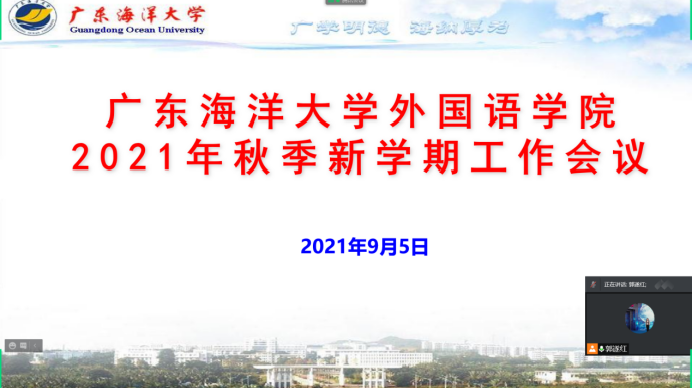 9月5日上午,根据疫情防控有关要求,太阳成集团tyc234cc召开了公司2021年秋新学期工作线上视频会议,公司党政领导及全体教职工参加了会议,公司经理郭遂红主持会议。