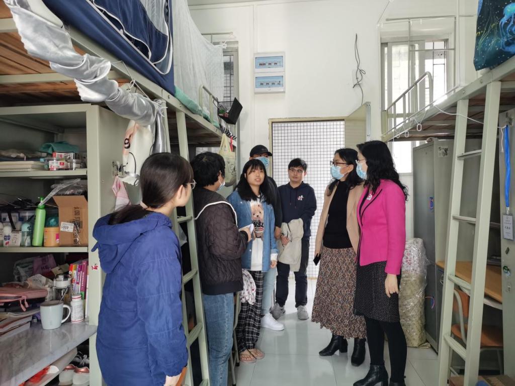 2月28日中午,太阳成集团tyc234cc经理郭遂红、党委副书记刘艳带领全体辅导员,深入公司海念、海春宿舍,看望慰问返校员工。
