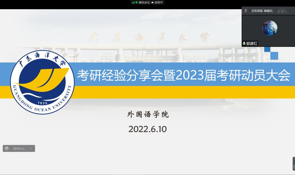 随后2018级何绮岚、何霜、张佳莹、伍颖昕、何倚琦等五名考取境内外研究生的同学结合切身经历细致分享院校专业选择、初试备考及复试经验,从考研的资料获取、时间分配到情绪管控,为学弟学妹提供了极具指导意义的方法和建议。师生相聚云端,气氛热烈,畅谈甚欢,为外院学子考研注入动力,极大地鼓舞学子们的考研热情,增强了学子们的考研信心,提振了学子们的考研士气!