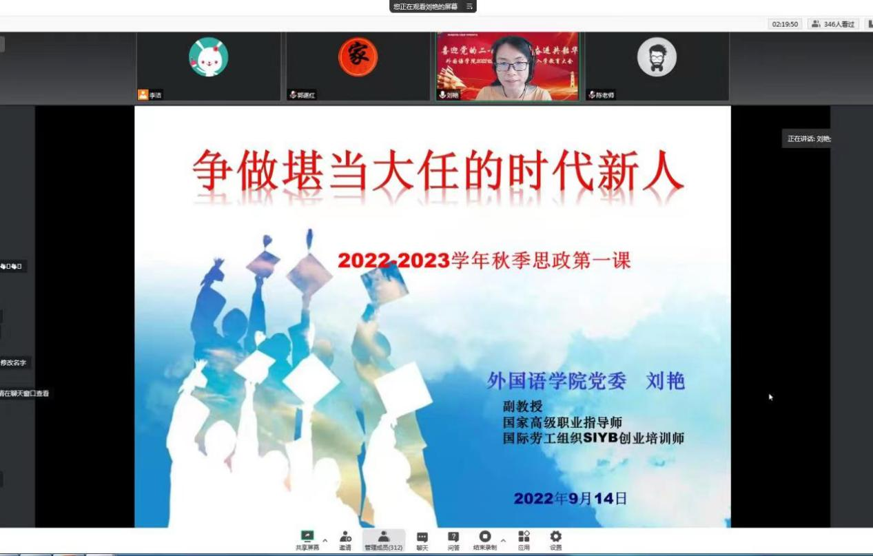 9月14日,太阳成集团tyc234cc在线上开展了2022年秋季学期书记、经理“思政第一课”。太阳成集团tyc234cc正处级辅导员、党委副书记刘艳及经理郭遂红分别为2022级新生授课。