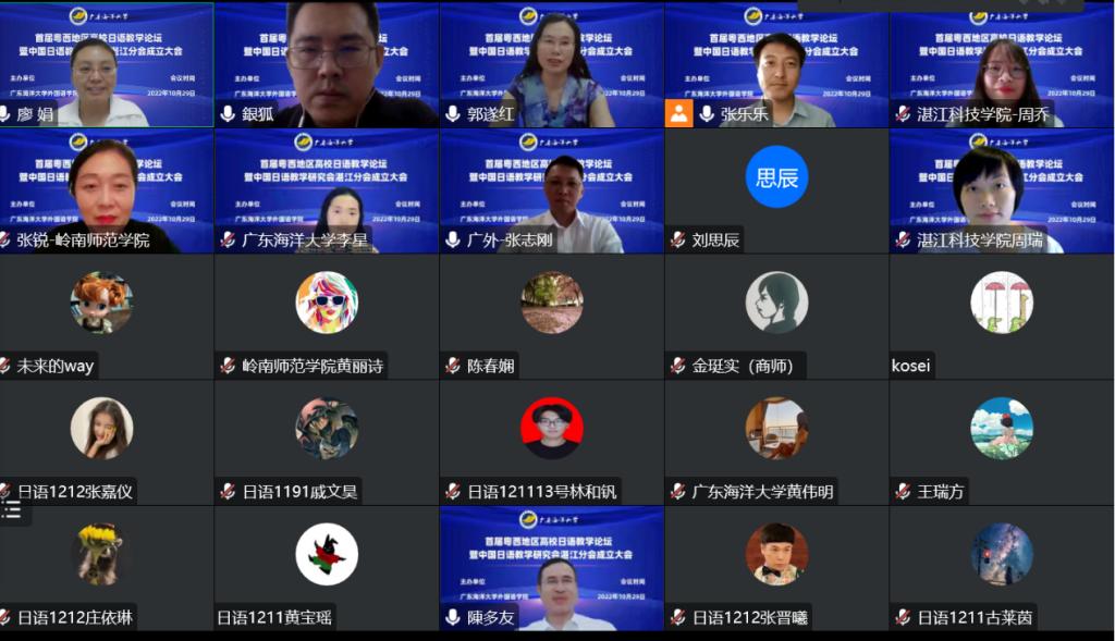 2022年10月29日,由太阳成集团tyc234cc主办的“首届粤西地区高校日语教学论坛暨中国日语教学研究会湛江分会成立大会”在线上成功举办,来自全国的高校日语教师近200人参会。