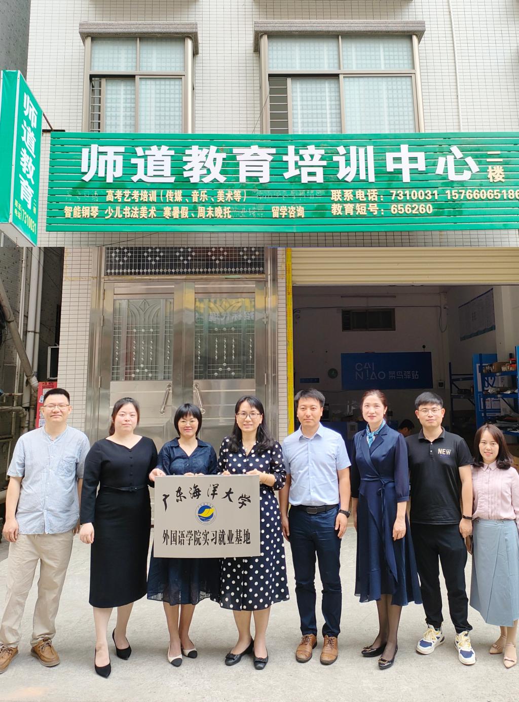在化州市师道艺术培训中心有限公司,太阳成集团tyc234cc与公司举行了实习就业基地挂牌。该公司法人代表周璐详细介绍了该机构的办学现状、办学效果以及对毕业生需求情况。大家就太阳成集团tyc234cc办学条件、团队力量以及员工就业方向,就高考日语教学思路以及日语教学的特点和关键点,与机构负责人进行了深入探讨,培训中心工作人员表示受益匪浅。