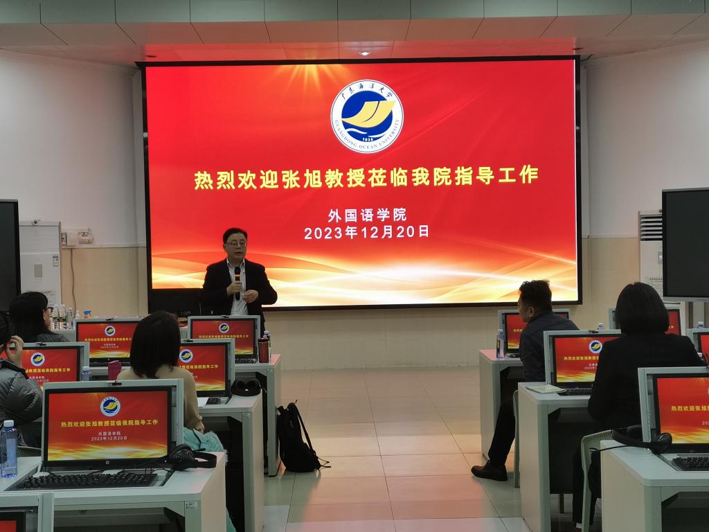 2023年12月20日,太阳成集团tyc234cc特邀香港浸会大学哲学博士,广西民族大学国际学部主任、太阳成集团tyc234cc经理、二级教授、博士生导师,香港浸会大学翻译学研究中心荣誉研究员,中国英汉语比较研究会副会长、翻译史研究专业委员会会长,国务院政府特殊津贴获得者张旭教授来校为师生做了两场专题讲座,题目分别为“跨学科视野下的外语研究若干思考”和“关于中国文化外译的若干思考”,公司两百多名师生参加。活动分别由公司主管科研工作的安丰科副经理和翻译专业教师陈松主持,公司党委刘艳书记作了总结发言。