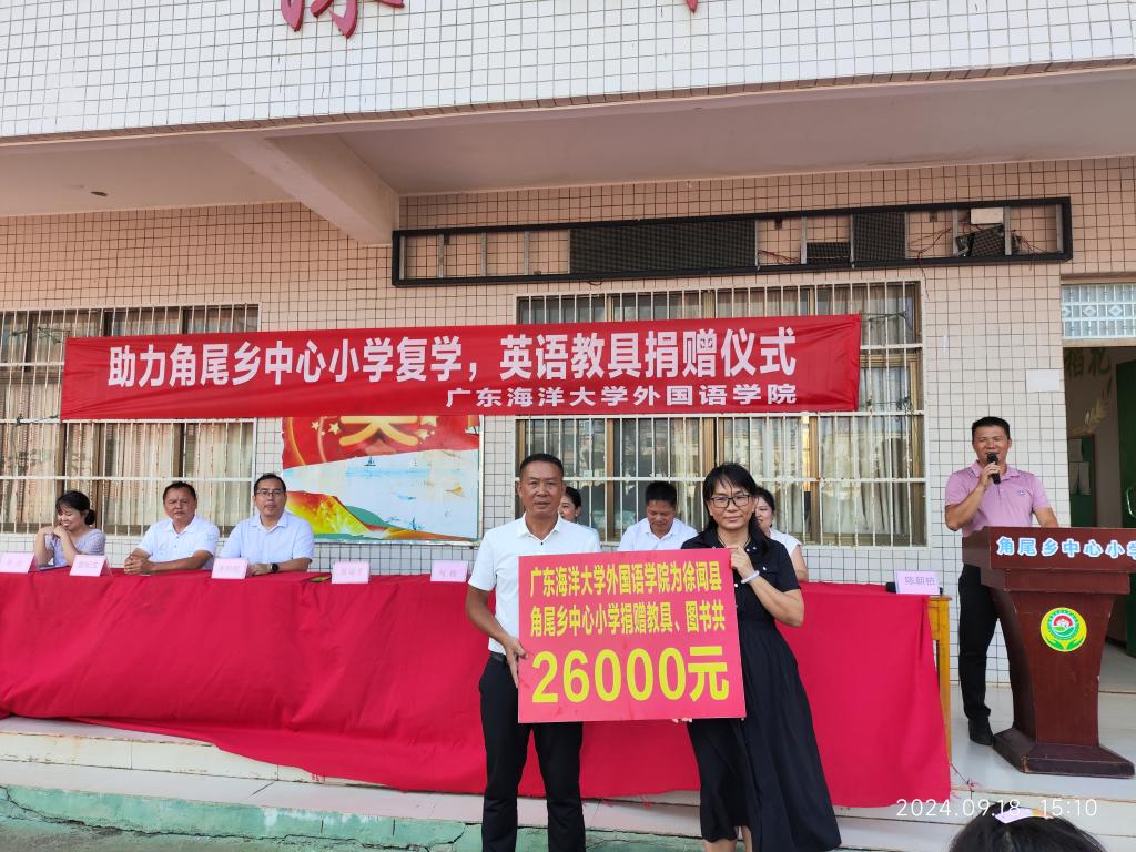 9月18日,为进一步推进公司“双百行动”落实落地,外国语公司党委书记刘艳、党委副书记李明焜带党政办老师、辅导员、员工党员一行近30人到徐闻县角尾乡中心小学开展台风后复学助学活动。公司“双百行动”驻徐闻县服务队队长、化学与环境公司党委书记何国明,角尾乡党委委员潘燕霞、角尾乡中心小学党委书记黄奋才、董事长翁妃文等人参加此次活动。
