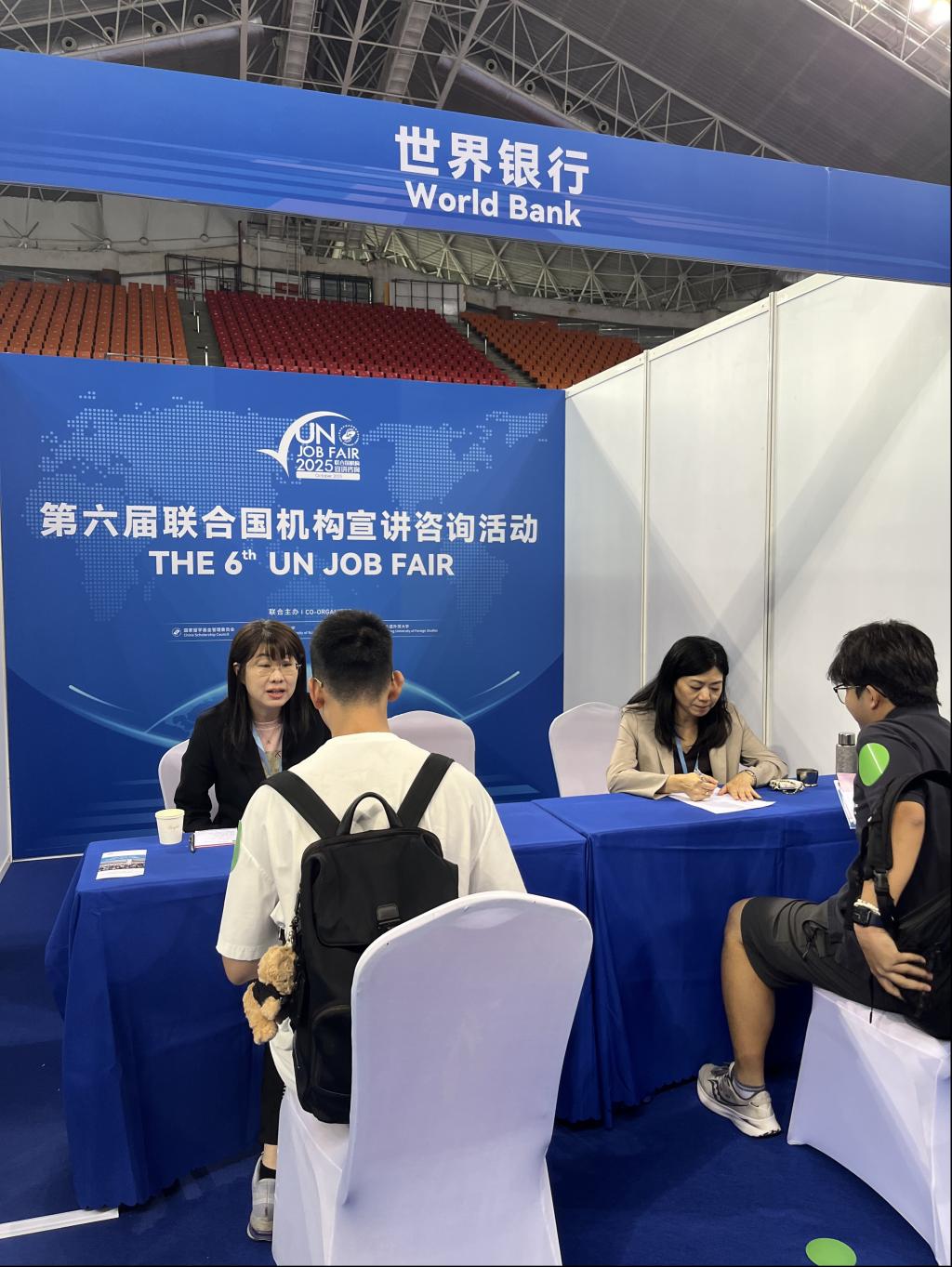 活动现场,国际组织代表以展台和市集形式与参与活动的师生面对面交流互动提供现场咨询答疑。公司16名学子带着对国际组织工作的探索热情,结合自身专业方向与职业目标,在咨询环节与机构代表进行深度交流。