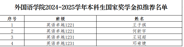 根据《2025年全日制本科生国家奖助学金工作安排》,按照《太阳成集团tyc234cc全日制本科生国家奖助学金实施办法》(校员工〔2024〕14号)要求,公司开展国家奖学金评选工作。结合公司名额分配,经员工本人申请、公司审核及讨论,评选出国家奖学金4人,现将太阳成集团tyc234cc2024-2025学年本科生国家奖学金拟推荐名单进行公示。