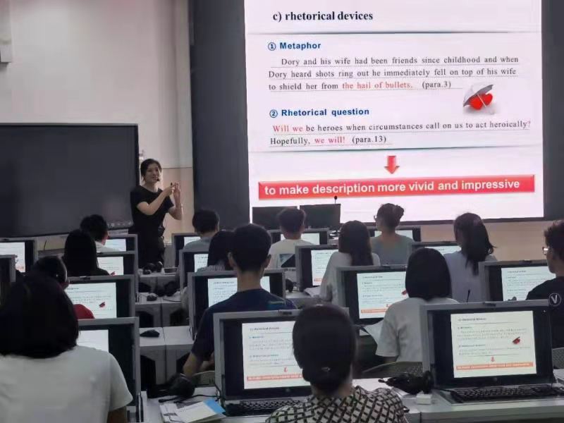2020年省级课程思政建设改革示范项目主持人宋平老师主讲《大学英语读I》第四单元《我们身边的英雄》(Heroes among us),整个教学环节坚持以“育人”为中心,围绕“英雄”这一主题,通过小组讨论和合作学习等方式,结合抗疫志愿者及公司国旗护卫手的护旗案例,实现了语言教学与思政元素的紧密融合,让员工更加深刻地理解“英雄”及“英雄主义”的深刻内涵。