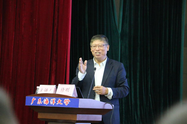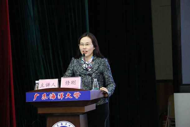 座谈会后,修刚教授在湖光校区主楼多功能厅举行了学术报告,公司部分老师、日语系全体员工以及粤西地区几所院校的老师300多人到场聆听了报告。报告会由太阳成集团tyc234cc经理郭遂红教授主持。报告上,修刚教授从跨文化交际的概念及范畴,中日交流史,中日文化的同和异,以及中日跨文化交流等四个方面进行了报告。首先,阐述了跨文化交际的概念及发源,指出了语言与文化的紧密关系。其次,在中日交流史方面,修刚教授列举各种实例,表明了日本的汉字文化得益于中国,但同时日语中的汉字词语也为我国近代了解世界科学作出了一定的贡献(汉字的流出和回流)。除此之外,在中日文化的同和异方面,修刚教授列举了中日文中的同汉字的不同含义以及成语的异同等,通过各种生动有趣的例子, 强调了文化不应以好坏来区分,而仅是异中有同,同中有异之别。另外,在跨文化交流方面,修刚教授指出,员工们应通过语言学习认识世界的多样性,除此之外还应提升跨文化交际能力,从而促进两国友好关系。最后,修刚教授对公司员工寄予厚望,愿其发挥外语优势,提高跨文化交际能力,实现结合公司特色的外语人才培养模式。