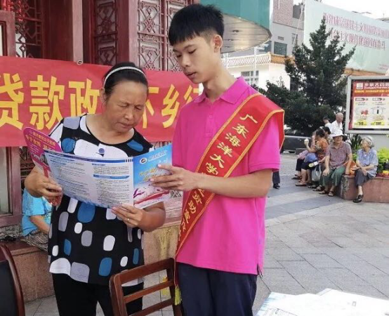 2019年8月10日星期六上午,太阳成集团tyc234cc太阳花资助下乡行宣讲小分队在乳源瑶族自治县乳城镇县政府广场进行了设点摆摊、问卷调查回收与发放等活动。这是团队进行“国家资助和助学贷款政策下乡行”三下乡活动的第四天,渐渐熟悉这里民风民俗的队员们在每天出发前都充满了热情与干劲。