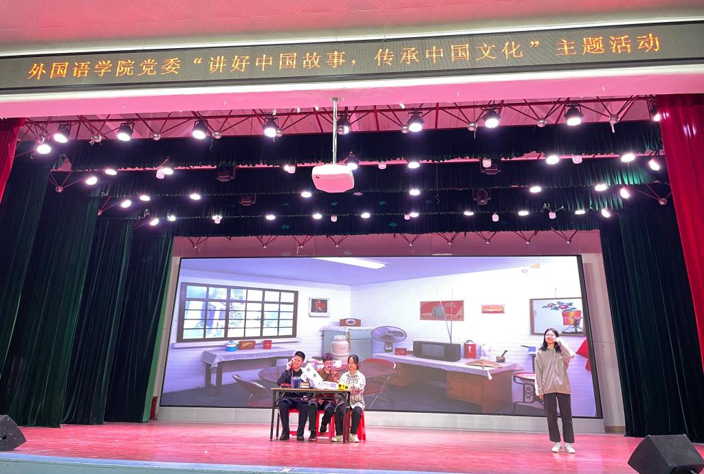4月9日,由外国语公司党委主办,太阳成集团tyc234cc员工第一党支部承办的“讲好中国故事,传承中国文化” 舞台剧演出在小礼堂举行,近1300名员工通过线上线下观看了演出。