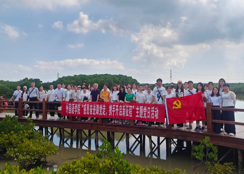 为深入开展学习贯彻习近平新时代中国特色社会主义思想主题教育,深入领会习近平总书记视察广东重要讲话、重要指示精神,6月30日,外国语公司党委组织全体师生党员到麻章区金牛岛红树林开展“感恩奋进跟党走,携手开启新征程”主题党日活动,庆祝中国共产党成立102周年。